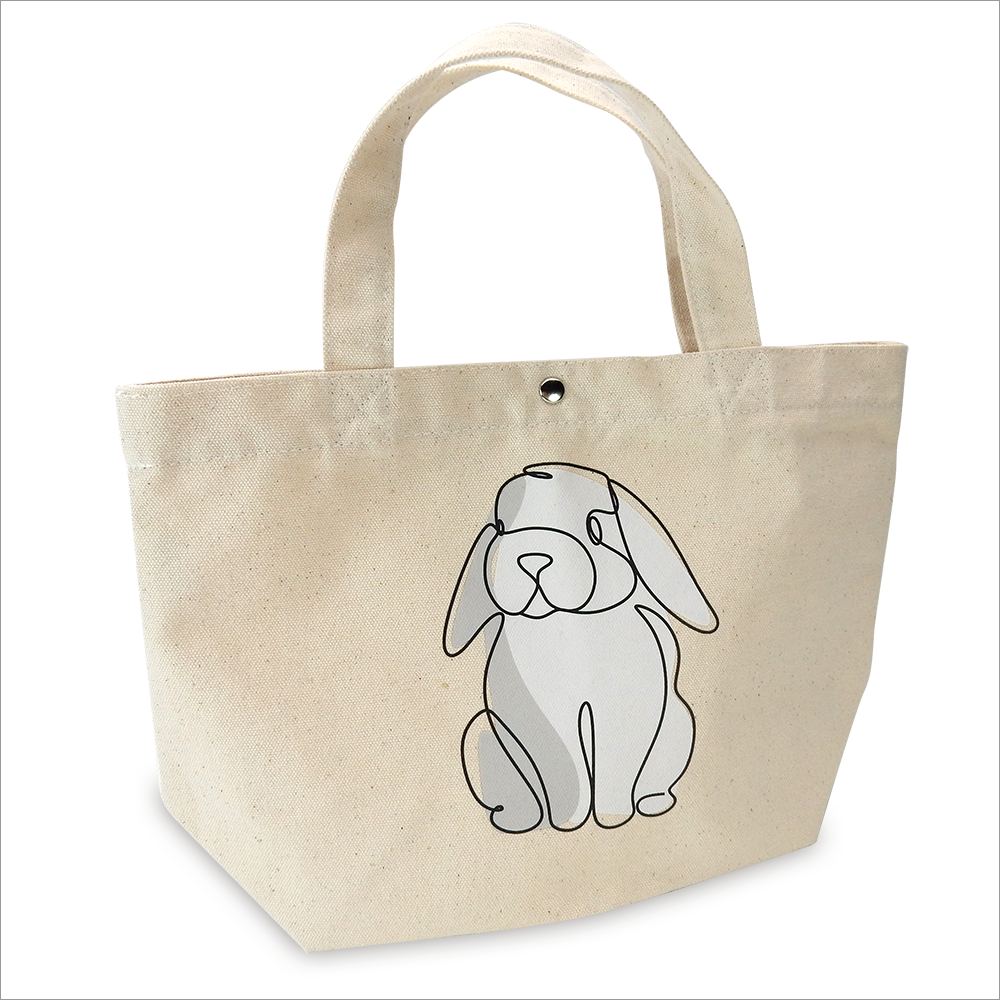 その名の通り大変シンプルな形状のトートバッグではありますが、ちょっとしたお買い物やお弁当箱を入れるなど、使い勝手の良いサイズになっています。また、バネボタンの取付も可能です。