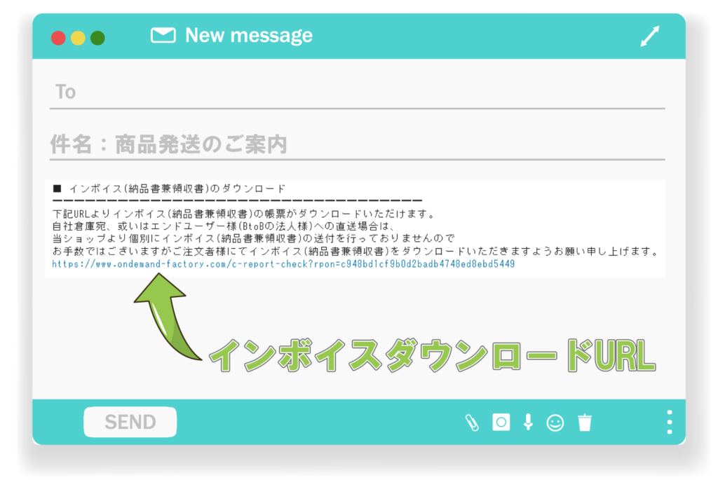 当ショップでは、エンドユーザー様直送(B to B時の法人様への直送)の場合、ご注文者様側で保管いただくインボイス書類は、インボイス制度の書式に対応した「商品発送のご案内メール」の本文をPDF形式等で保存いただいておりましたが、2024年1月5日の出荷分より「商品出荷のご案内メール」に記載されているURLよりPDF形式のインボイス(納品書兼領収書)がダウンロードできるようになりました。